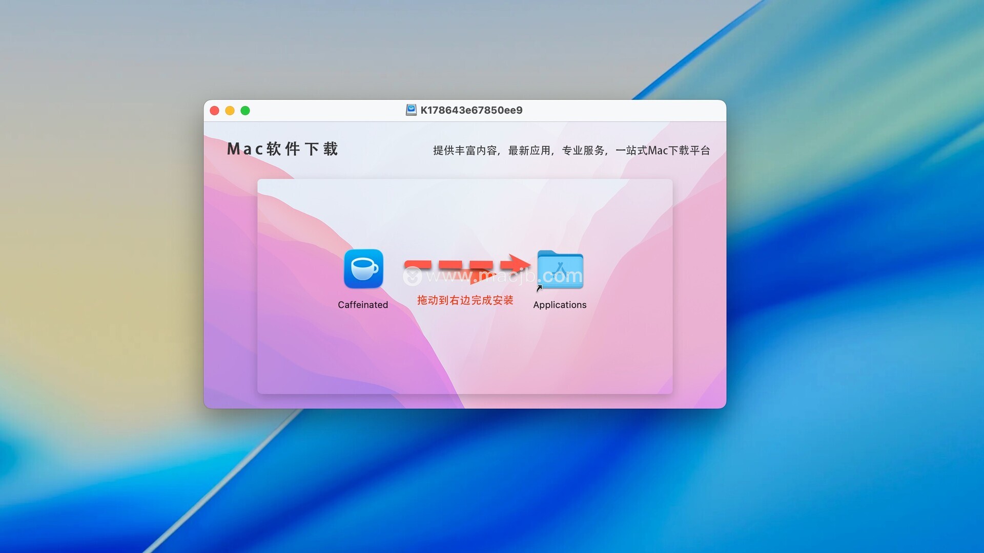 下载完成后打开,将左侧的软件拖到右边的应用程序中进行安装。