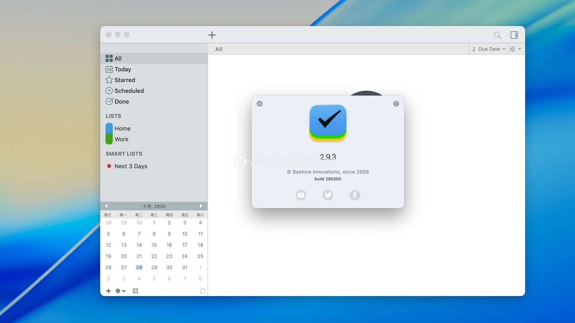2Do Mac版是一款待办事项GTD任务管理,可以帮助用户无需打开应用即可访问您的任务。您的今日列表以及已加星标和自定义列表在OS X的通知中心非常方便,帮助您提高工作效率!