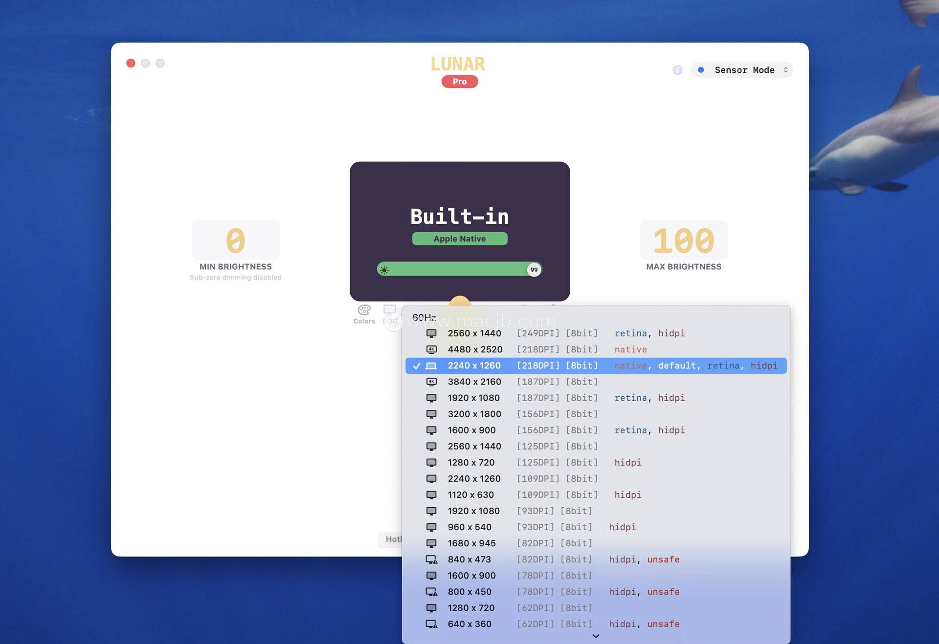 3、启动时,Lunar将覆盖显示器具有的任何亮度/对比度设置