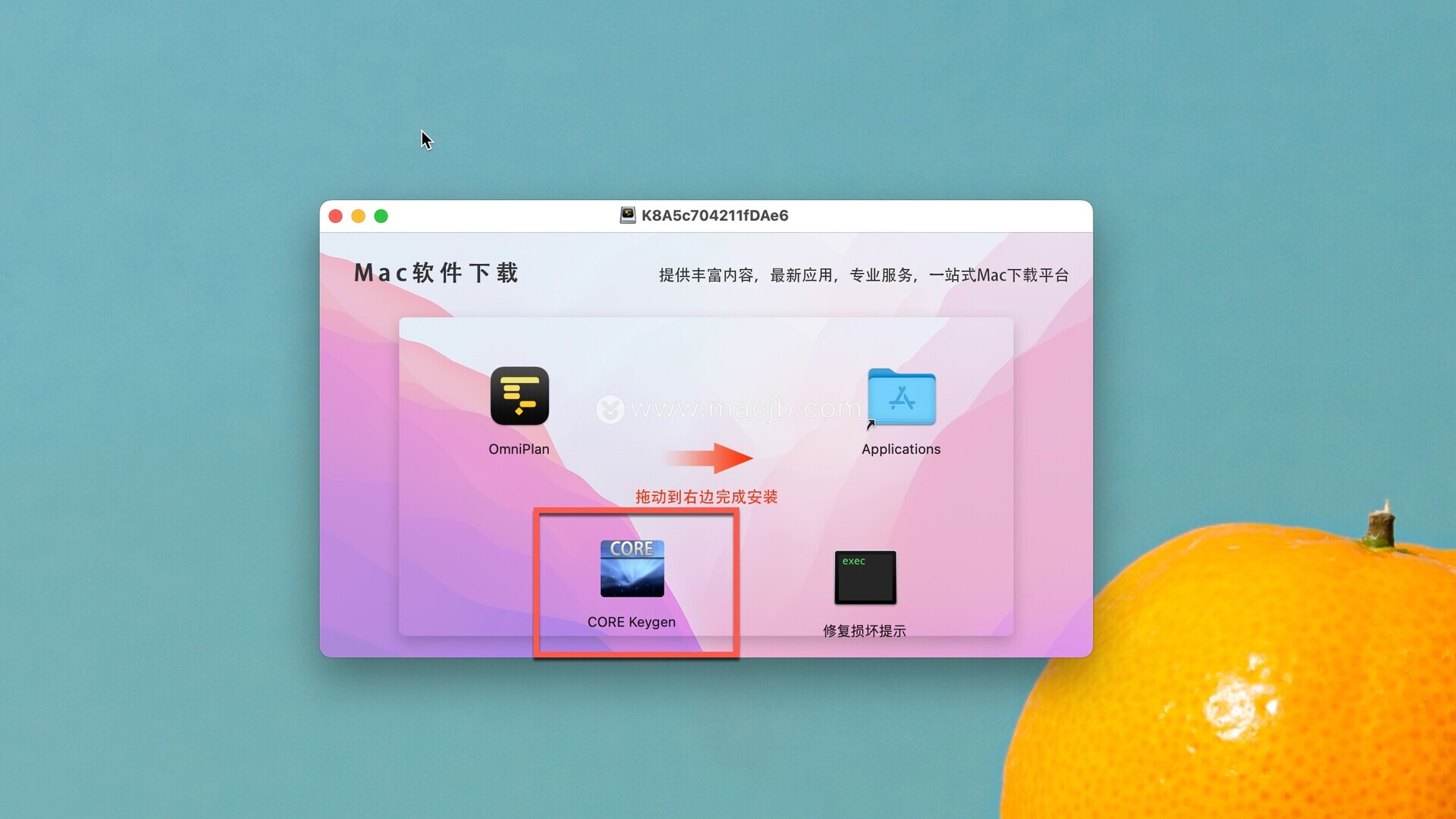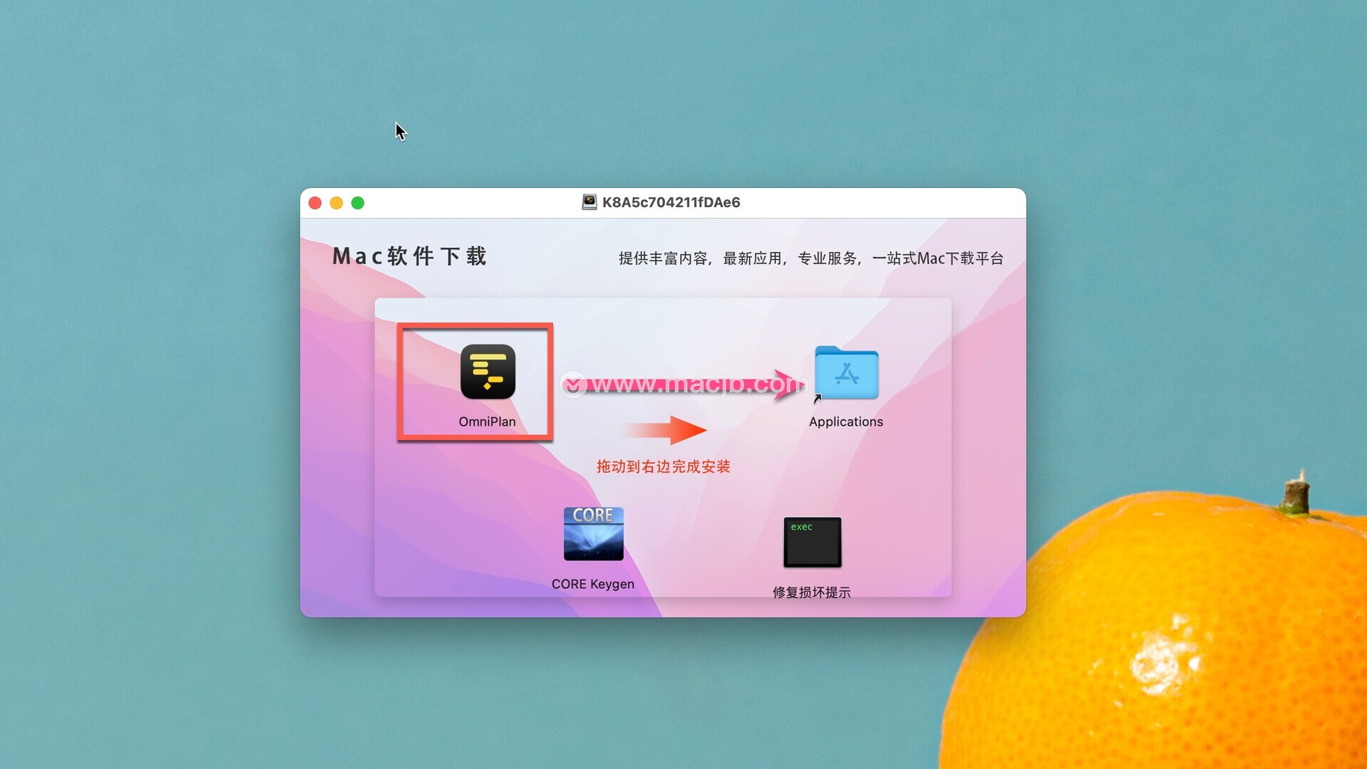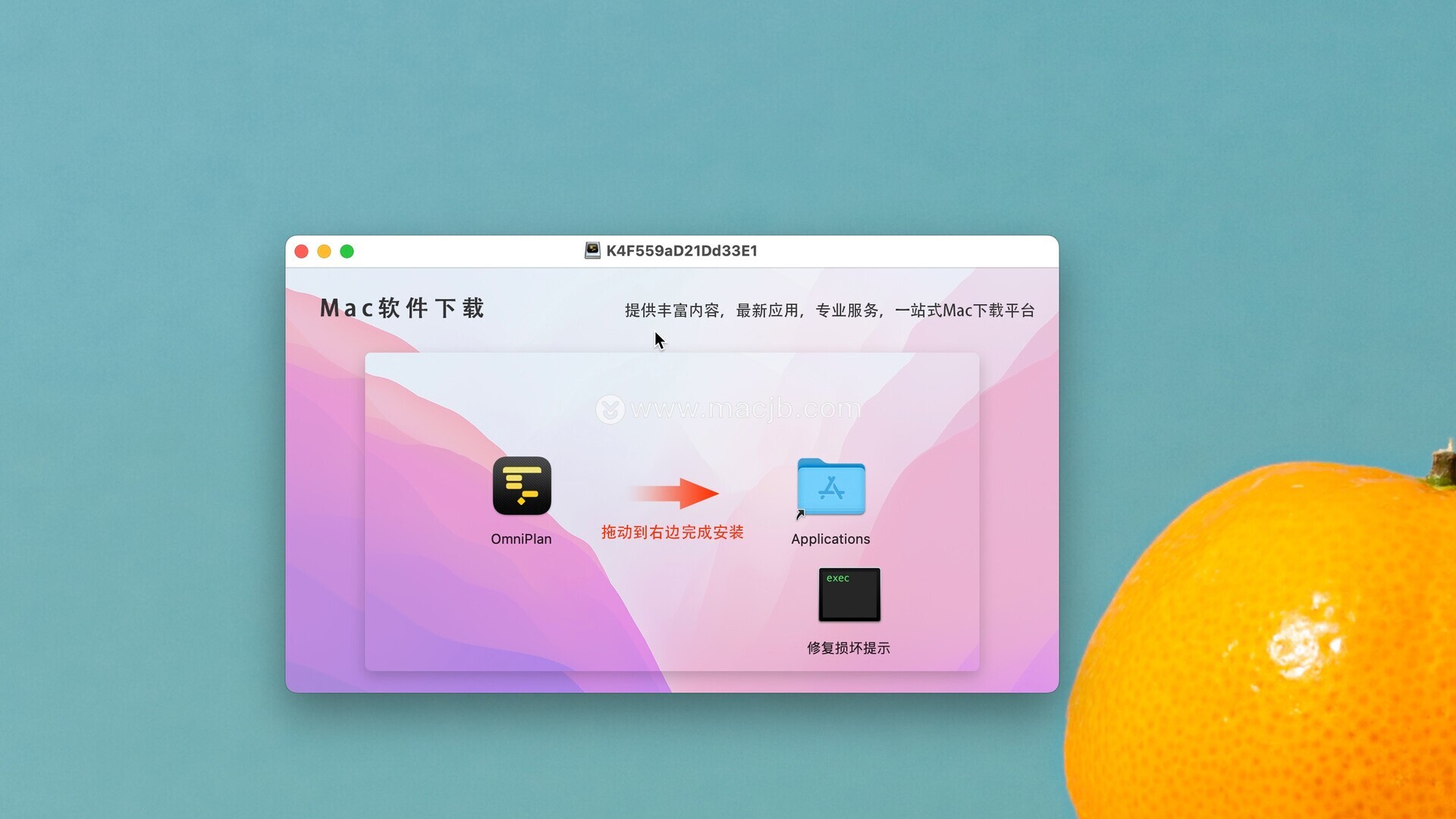 安装包下载完成后打开,拖动左侧的OmniPlan Pro 4到右侧应用程序中即可