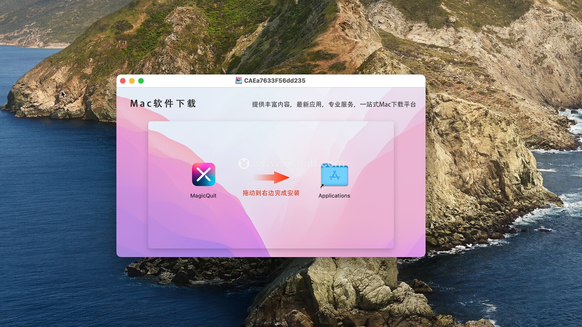 MagicQuit下载完成后打开,拖动左侧的软件到右侧应用程序中即可