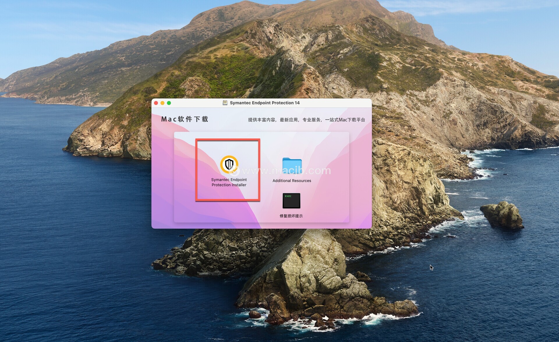 下载软件完成后,打开软件包,双击【Symantec Endpoint Protection Installer】安装,然后按照提示完成安装。