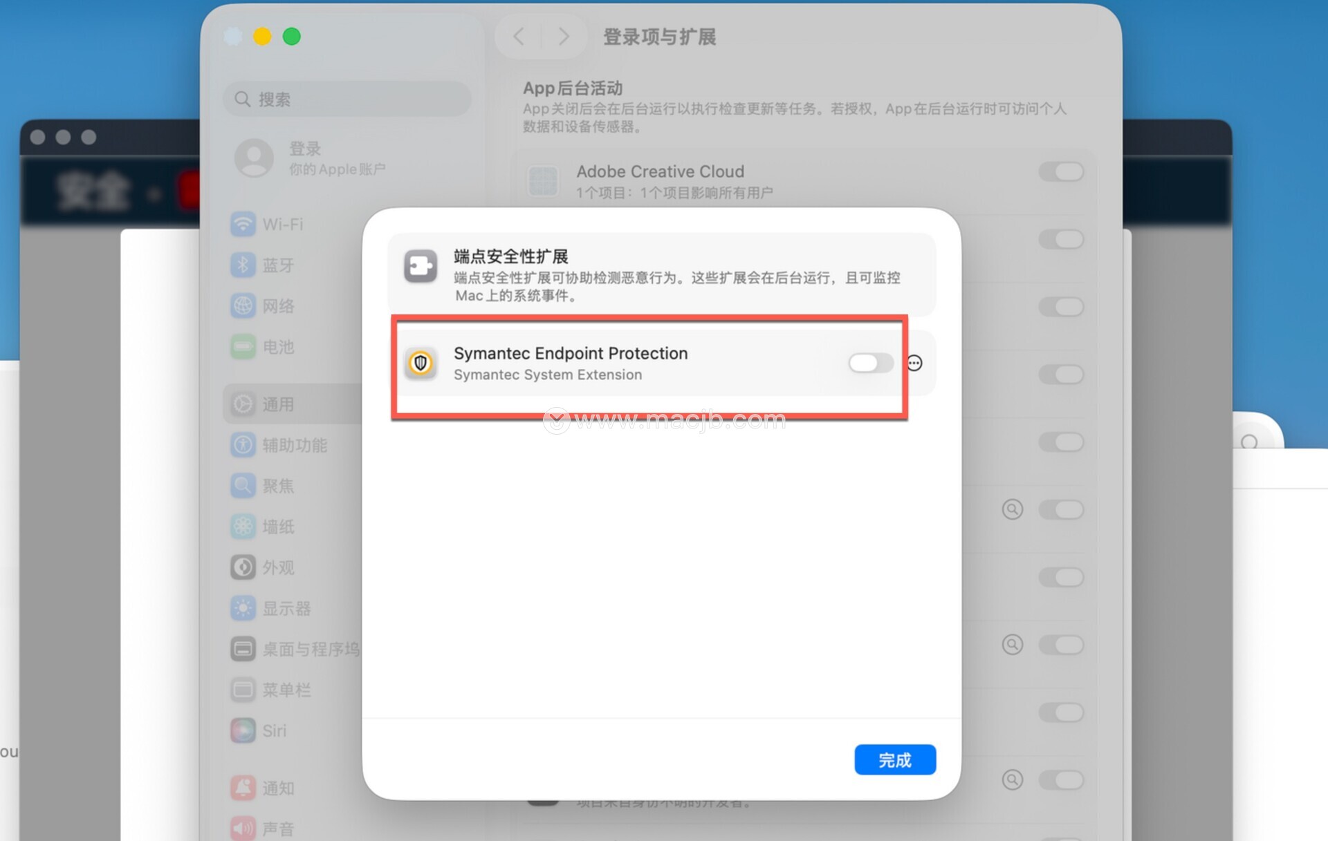 安装完毕之后会弹出需要给权限,在这两个位置赋予权限即可。