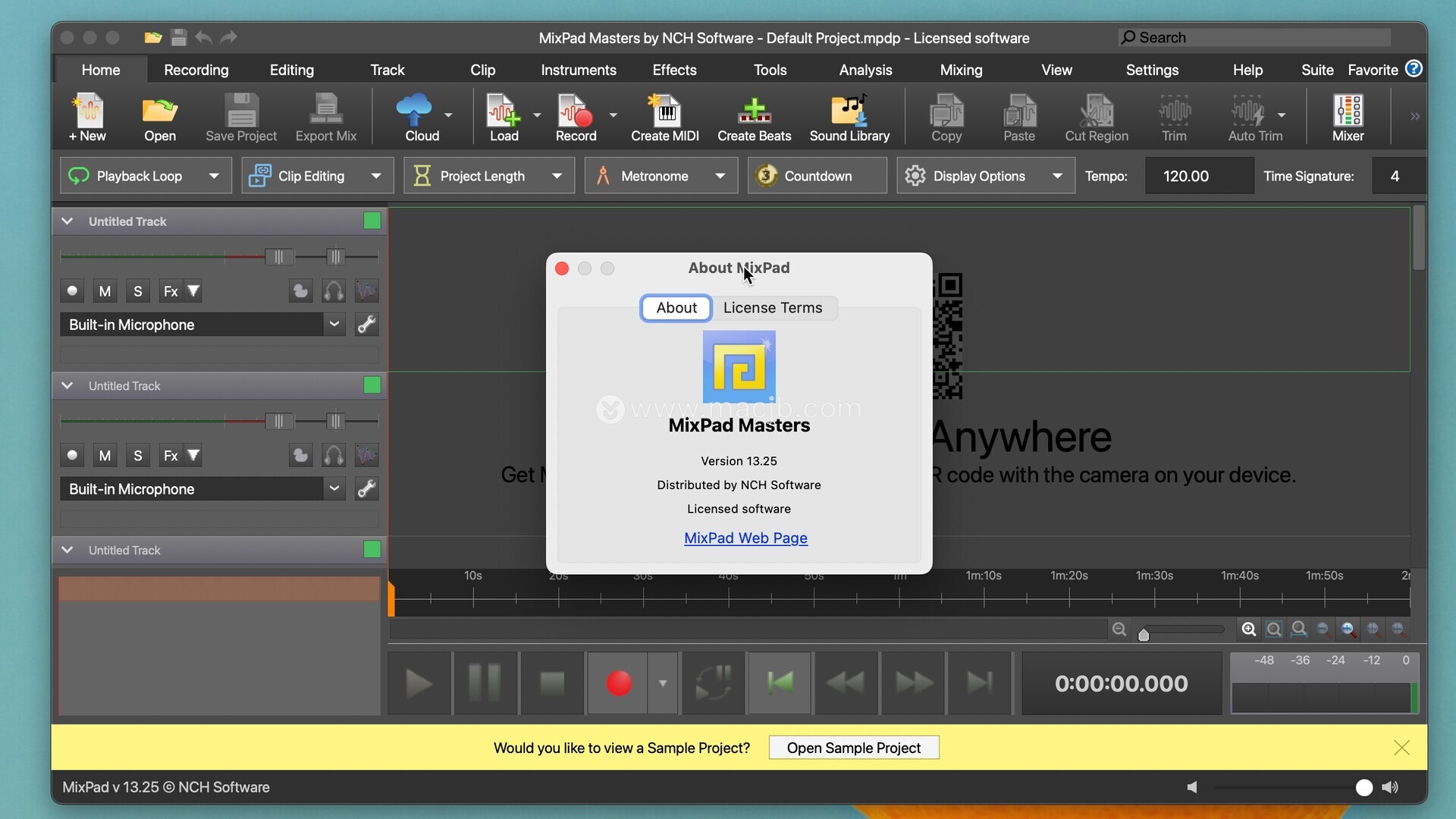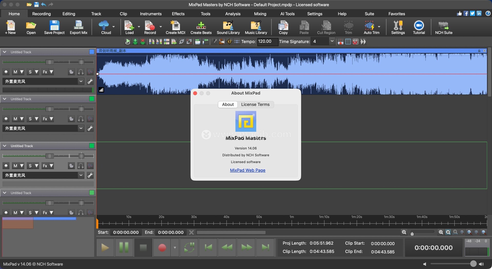 无论您是新手还是专业音乐家,NCH MixPad Masters 都是一款在 Mac 上创作和制作音乐的强大工具。测试环境:MacOS 14.7/26.2系统