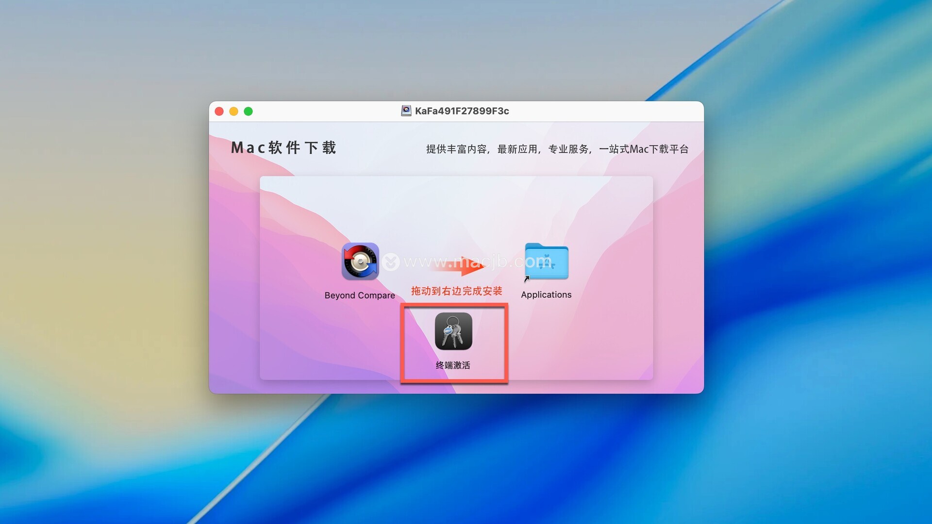 将左侧的Beyond Compare 5拖动到右侧的应用程序中