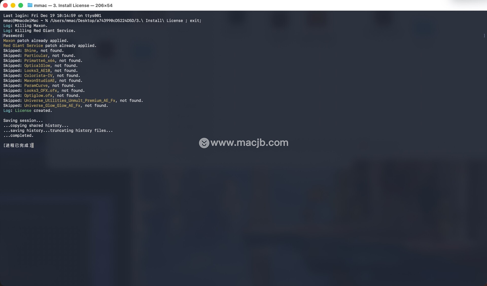 双击安装补丁后,弹出终端页面,在下图位置输入密码(密码不显示回车即可)