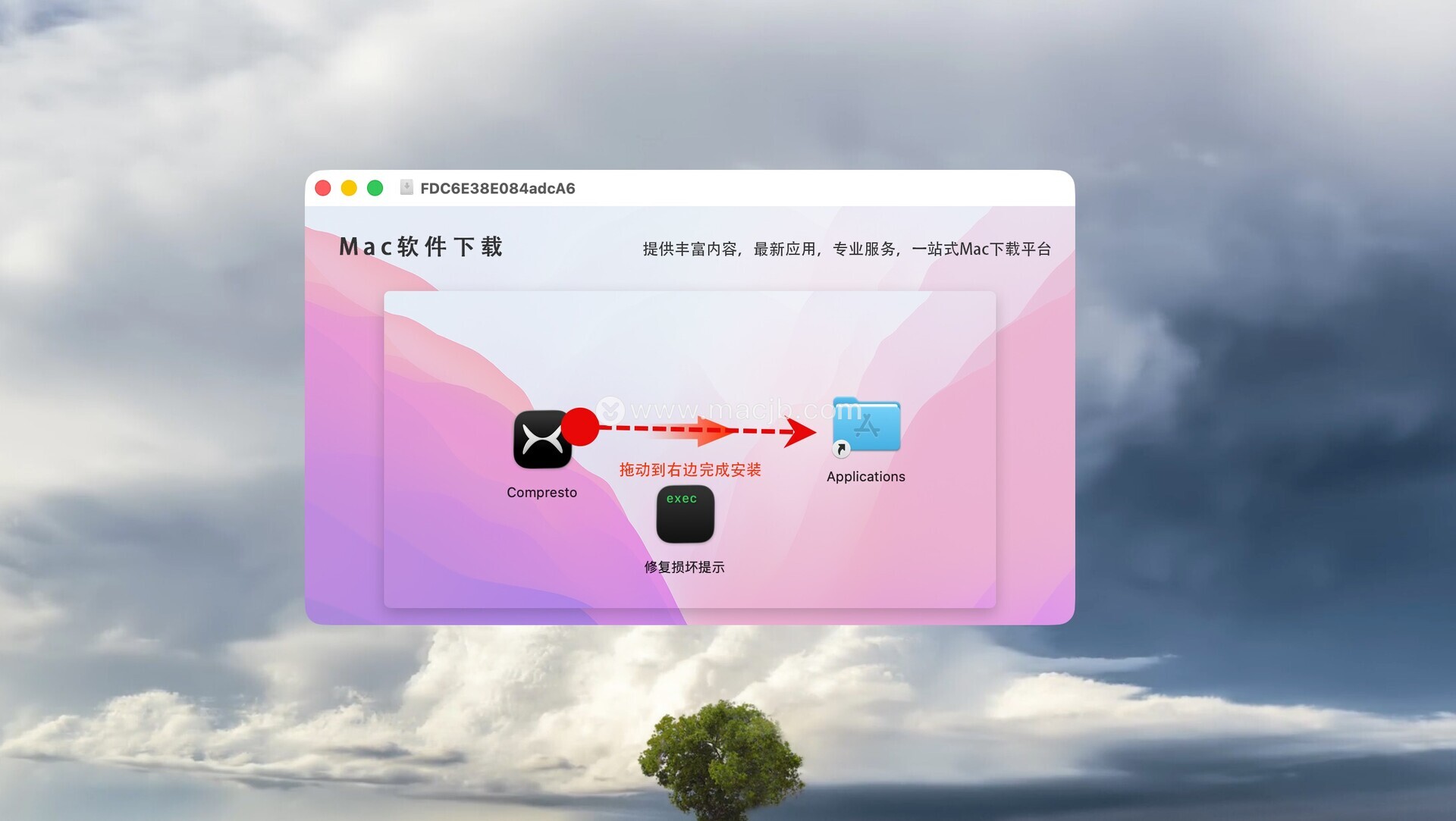 Compresto破解版下载完成后打开,拖动左侧的软件到右侧应用程序中