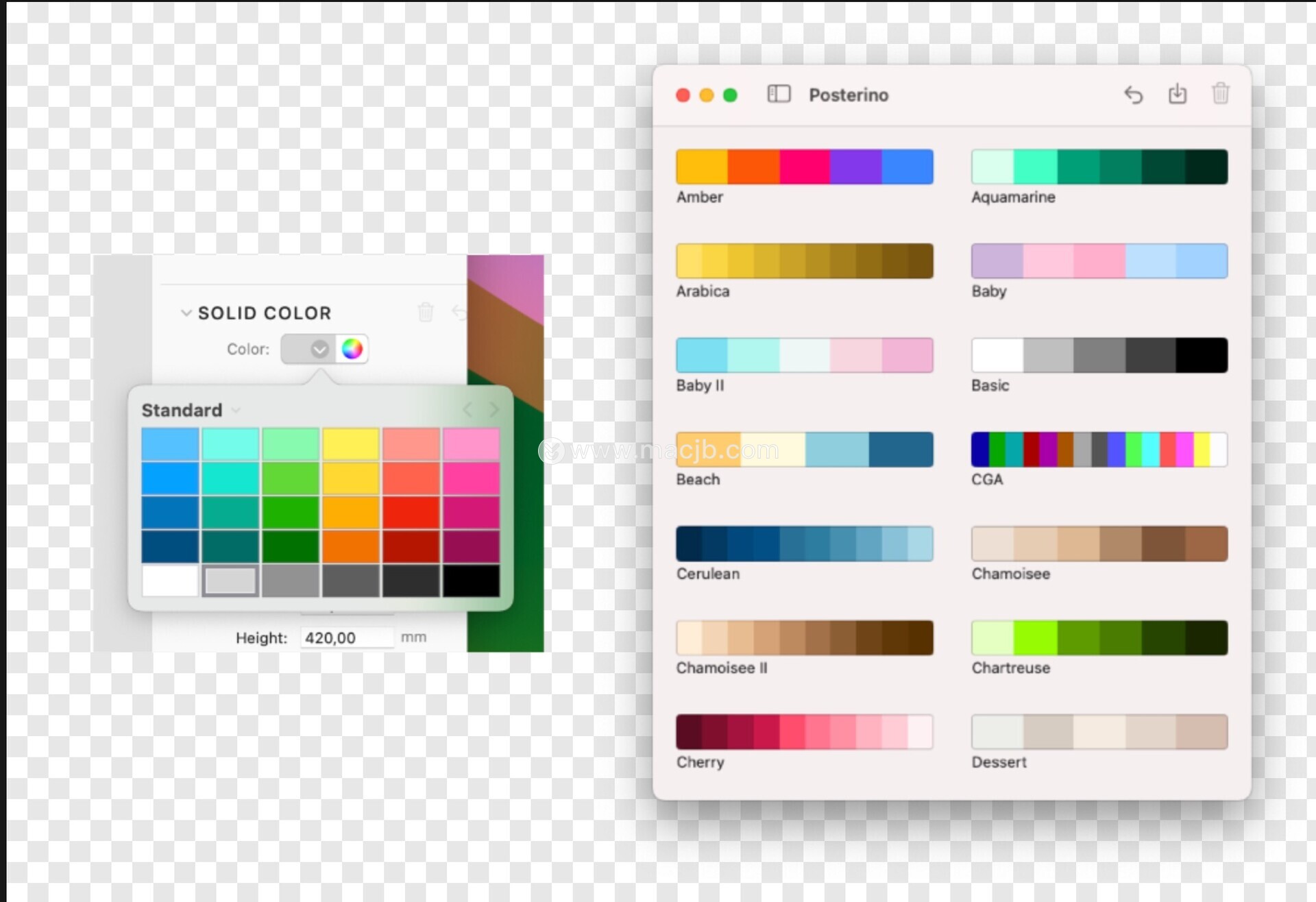 - 随着图像背景的去除,有了新的空间。一些丰富多彩的东西。现在,Posterino 配有一套可供选择的色彩调色板。