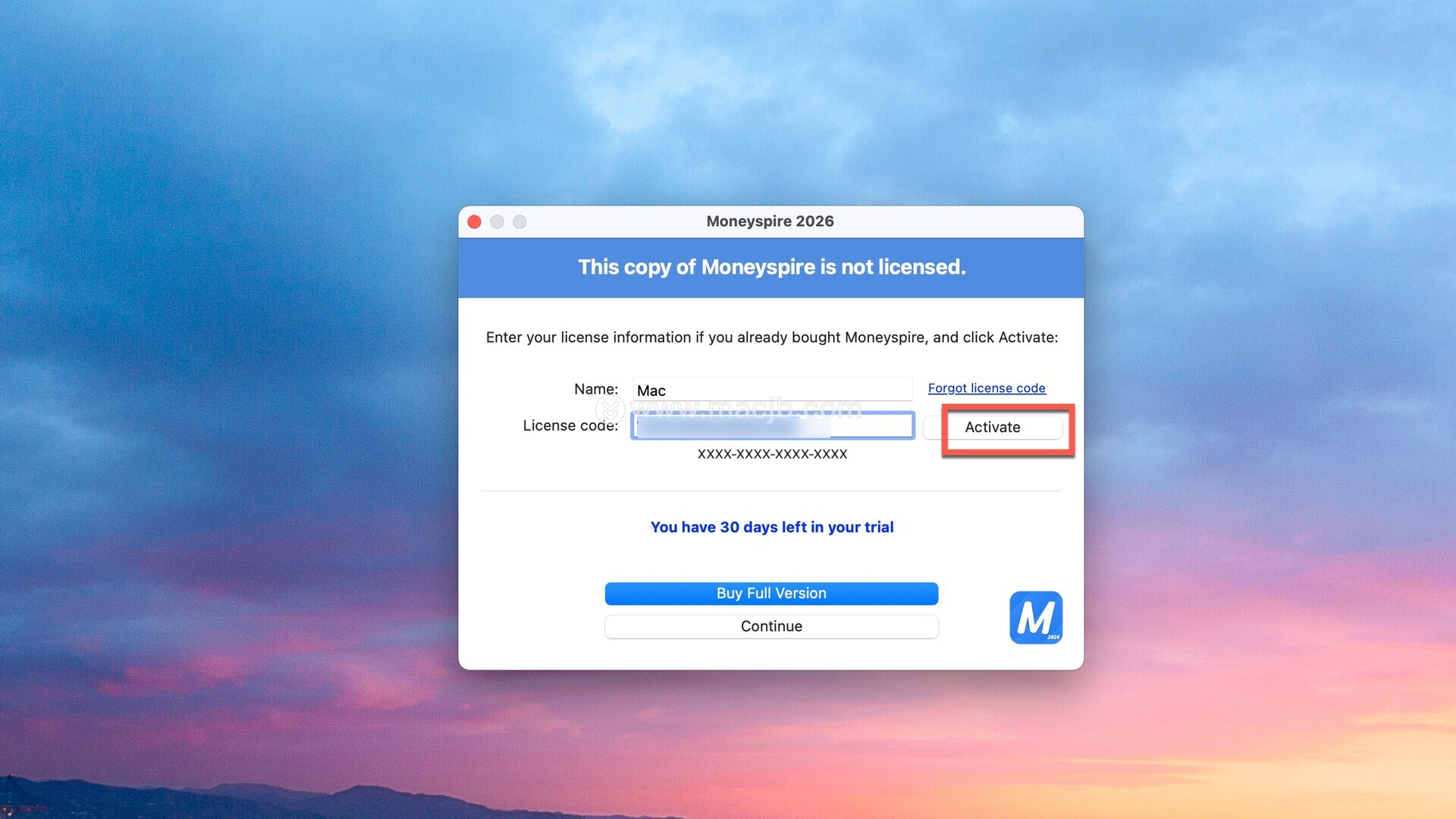 点击注册码,将注册码复制粘贴到注册框中,输入自己的用户名,点击activate