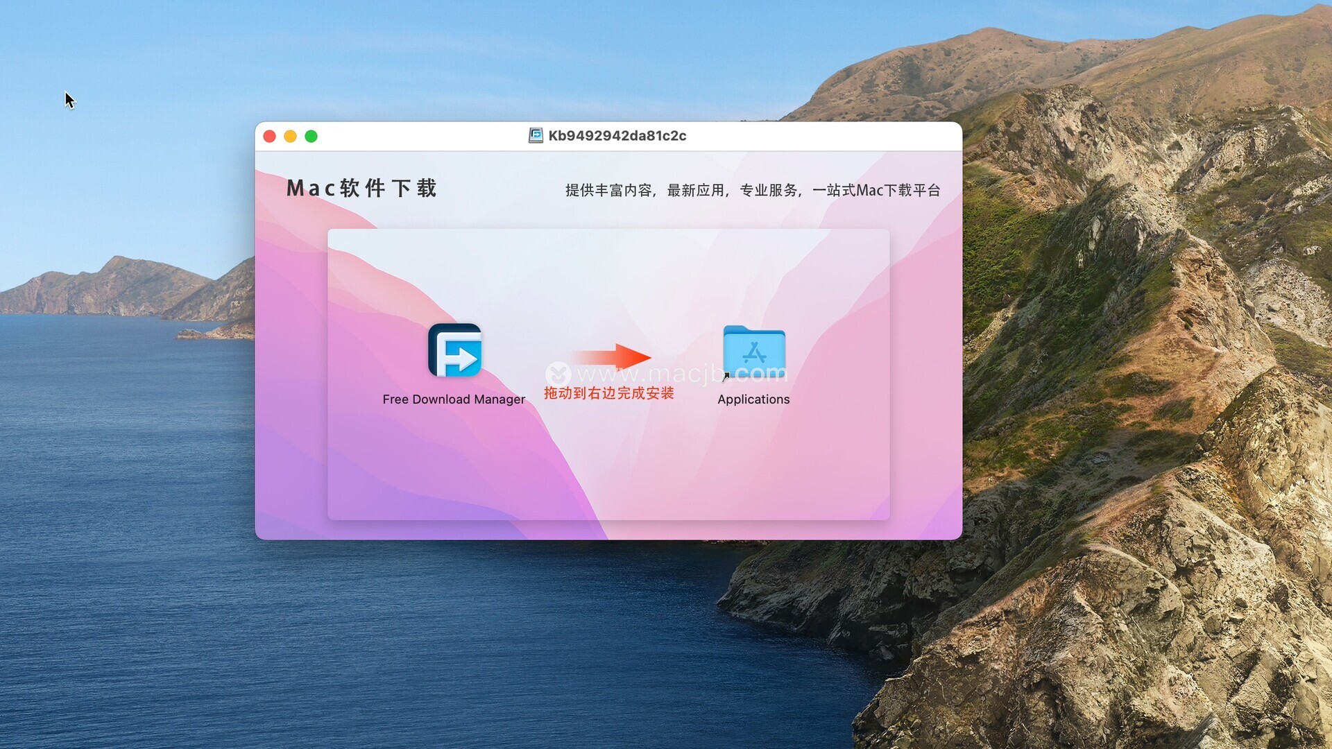 安装包下载完成后,拖动左侧的Free Download Manager到右侧应用程序中即可