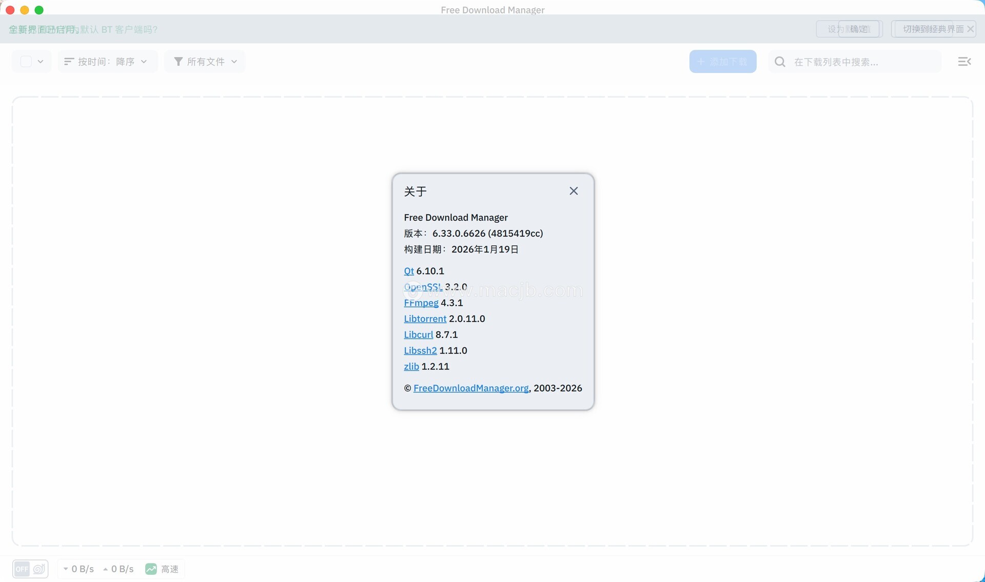 Free Download Manager mac版是专业化多点续传下载工具,可以处理HTTP,FTP和BitTorrent协议的管理器和加速器,同时还能够下载YouTube内容。本软件测试环境26.2系统!