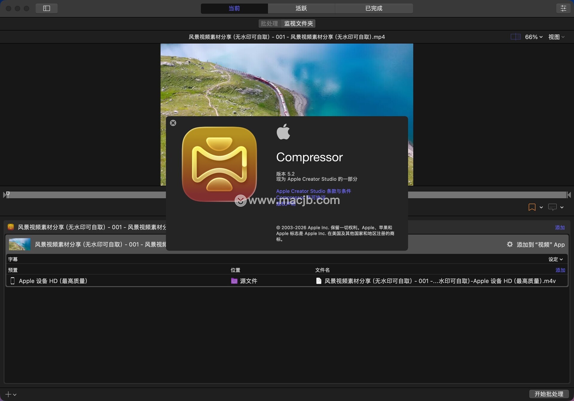 高性能编码。强大的 Metal 引擎可充分利用 Mac 电脑的中央处理器、图形处理器和内存,为高分辨率视频的编码工作提速。Compressor 依托硬件加速来进行 H.264 和 HEVC 编码,可将任务分配到多个中央处理器核心,还能调动图形处理器为各种高难重任加速。