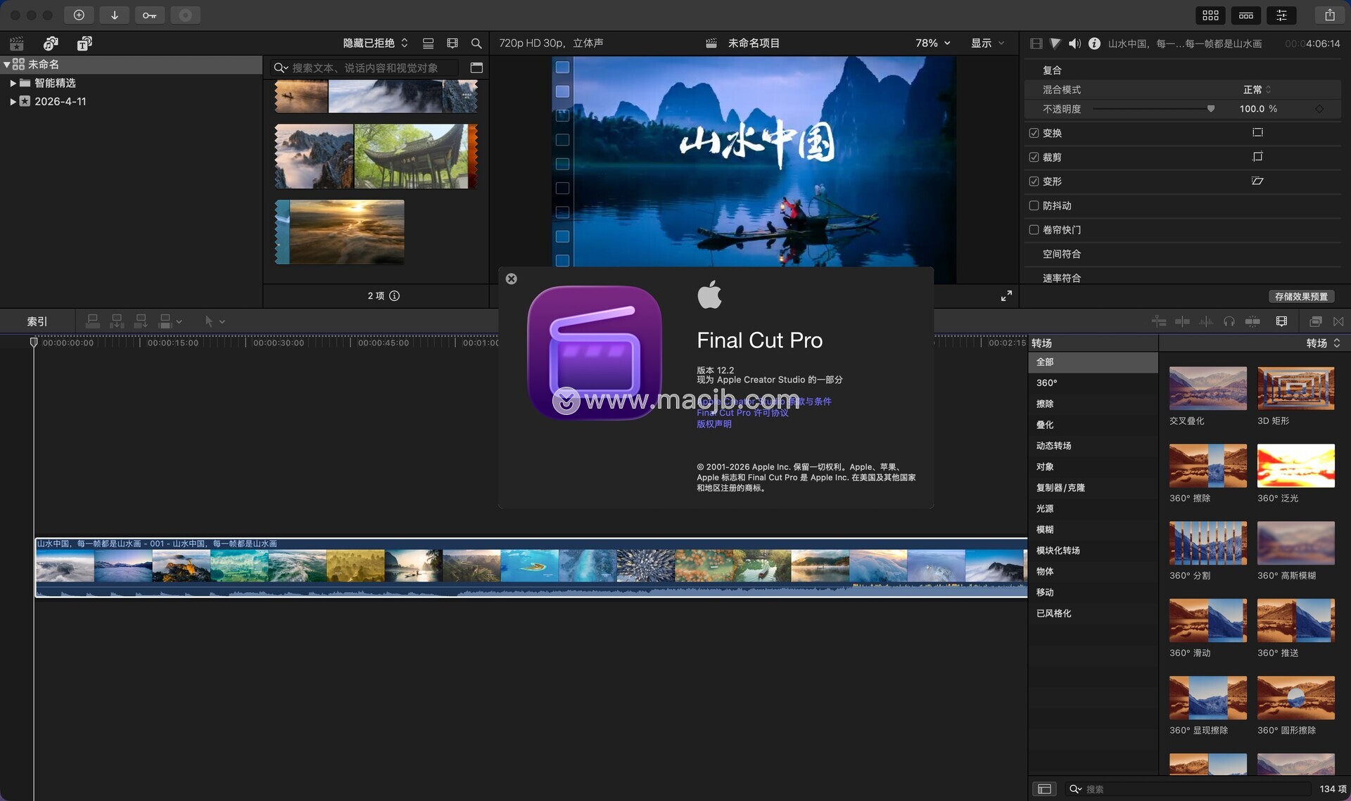 温馨提示: Final Cut Pro 12版本推荐搭载 Apple 芯片的 Mac,且为MacOS15.6及以上系统使用!