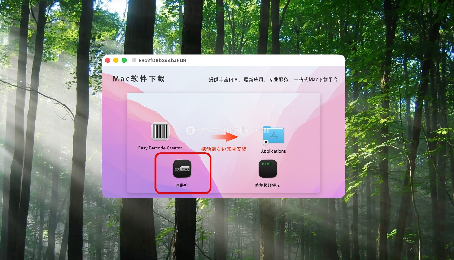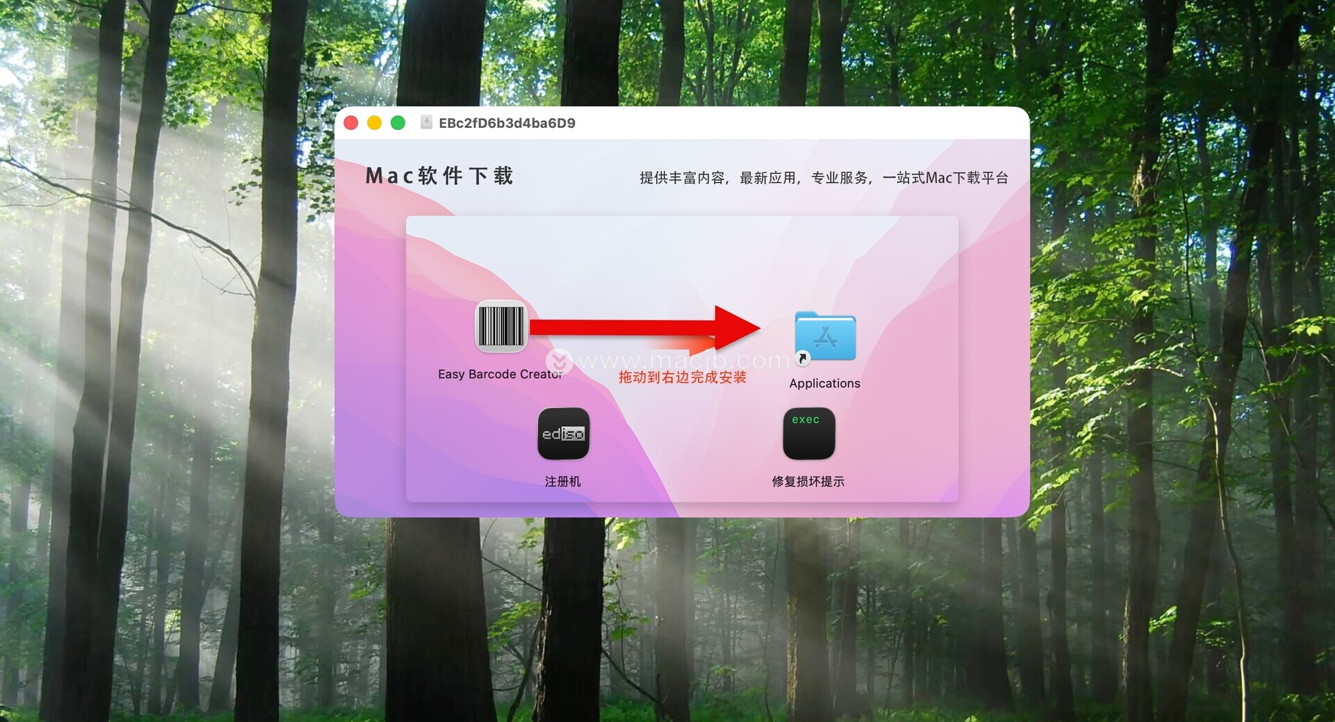 将左侧的Easy Barcode Creator拖动到右侧的应用程序中即可,如图