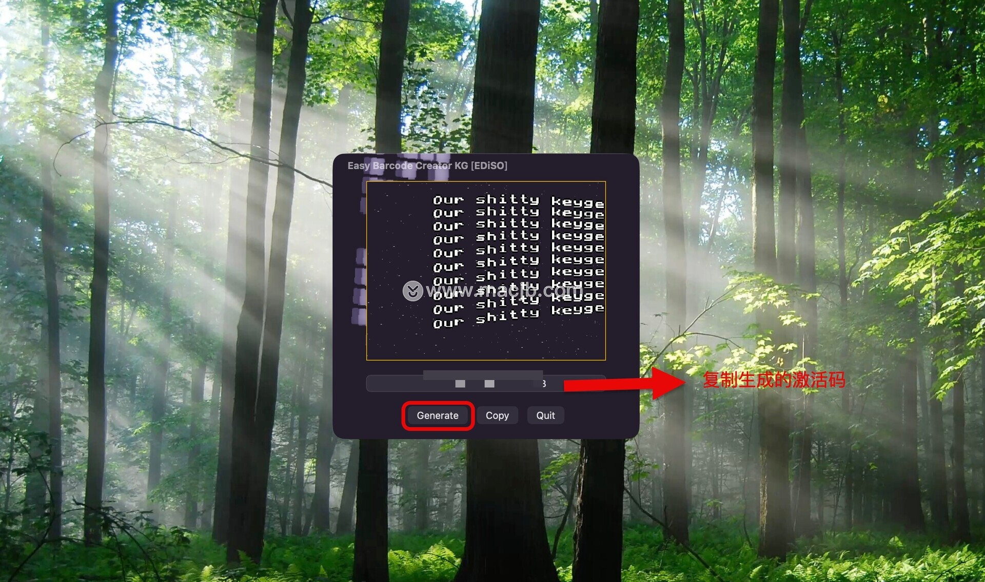 点击Generate生成激活码并复制,如图