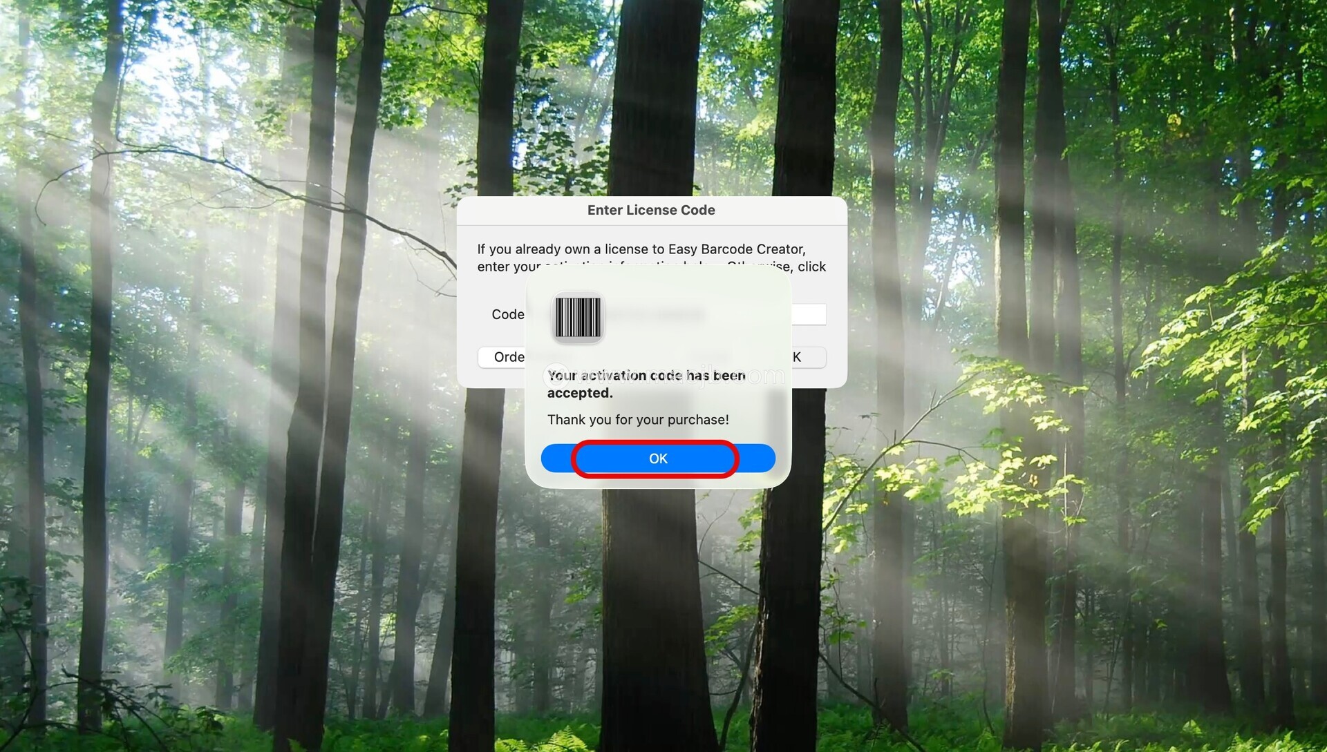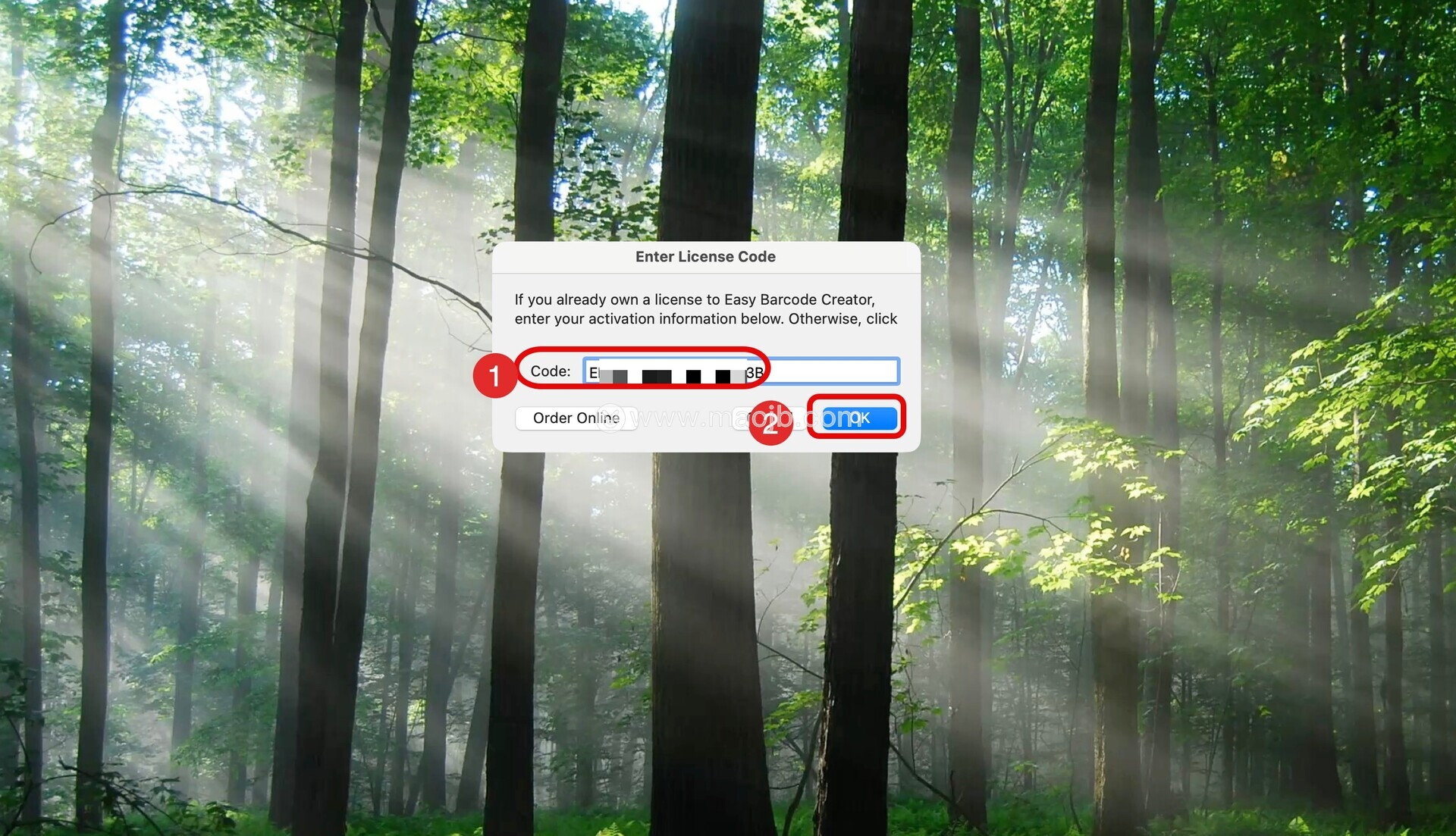 将复制好的激活码粘贴到激活页面,点击OK,如图