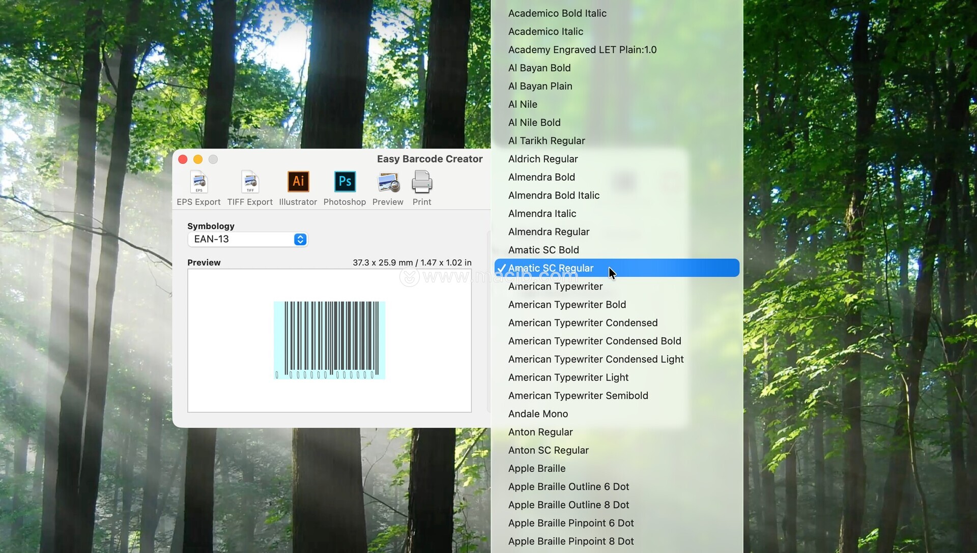 Easy Barcode Creator for Mac是一款简单实用的条形码生成工具,能够帮助 Mac 用户快速创建多种标准条码并导出为高质量图像文件。软件通过直观的操作界面和实时预览功能,让条码制作过程变得轻松高效。对于需要制作商品标签、库存编码或物流标识的用户来说,这款工具能够提供方便可靠的解决方案,在 macOS 平台上实现快速而稳定的条码生成体验。