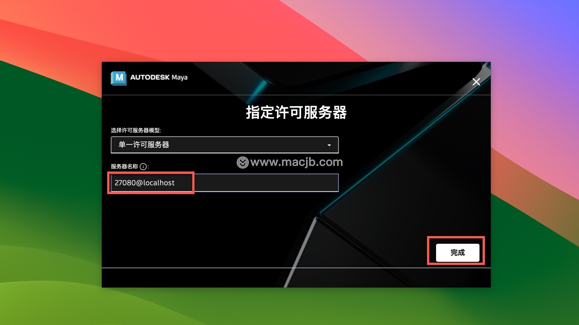 手动输入27080@localhost,点击完成,即可破解成功。