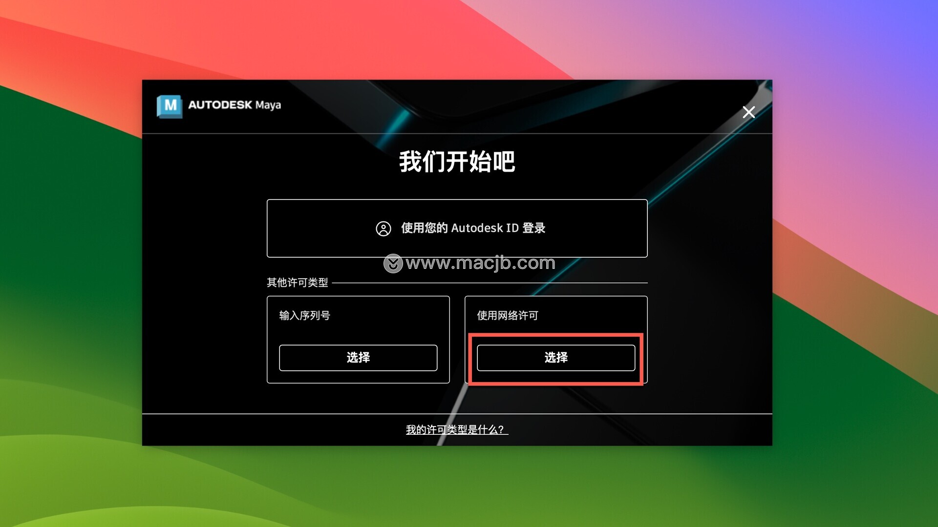操作完毕后,应用程序中打开软件,在使用网络许可处,点击选择
