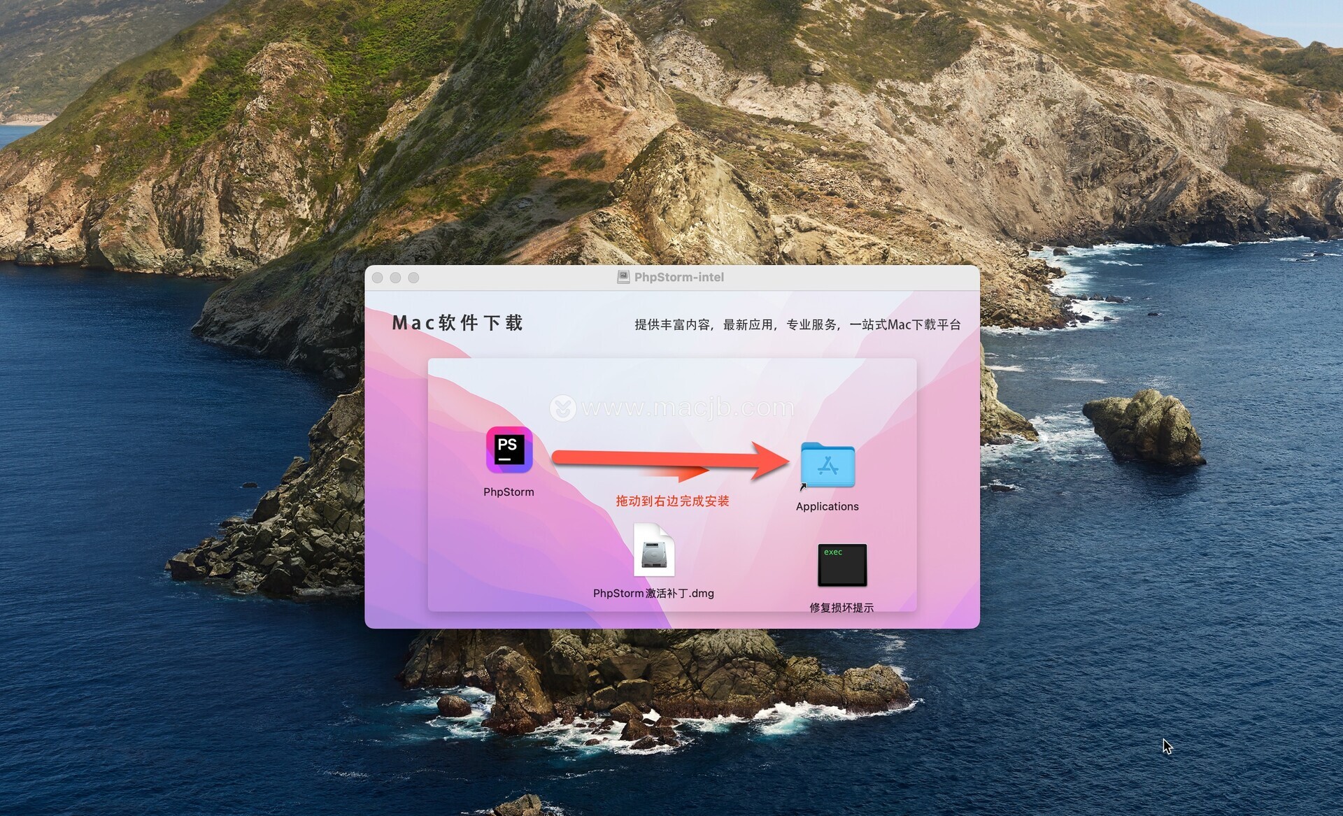下载完成后,打开安装包,将左侧文件拖动到右侧文件夹如图: