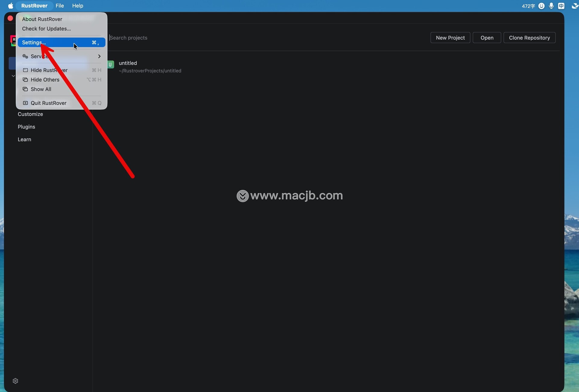 打开软件,点击左上角菜单栏settings,如图: