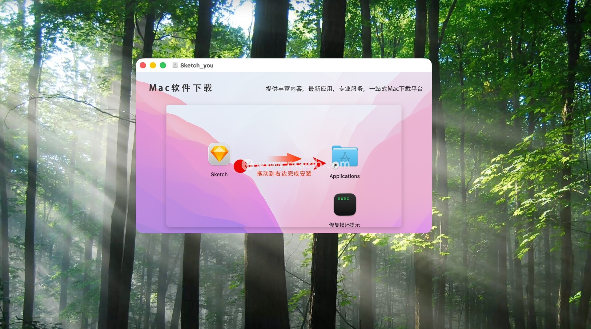 将左侧的Sketch拖动到右侧的应用程序中即可,如图